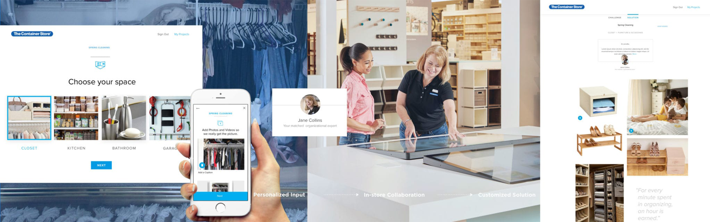 What’s interesting about this initiative is that it originally didn’t involve live Organization Experts. We initially envisioned customers taking photos, videos and measurements of their organization challenge, then uploading them to an app or website. Then, a machine learning algorithm would create a digital solution board filled with products that would solve the problem.