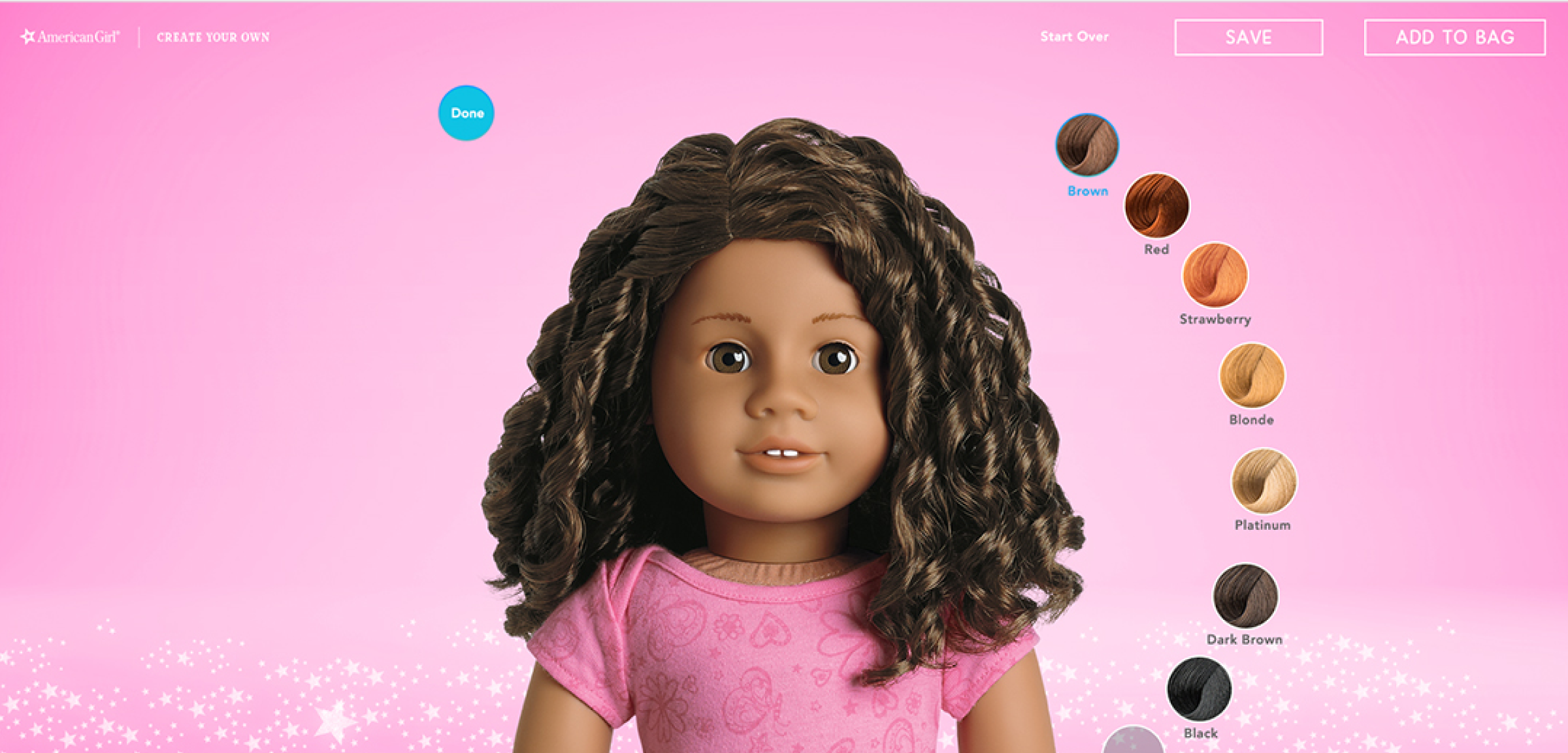 In a collective workshop atmosphere, girls can design the American Girl doll of their dreams from more than one million possible design combinations—an unprecedented level of choice. Girls can also create one-of-a-kind doll outfits and girl-sized products at the design studio in-store, which can be printed and ready to take home the same day.