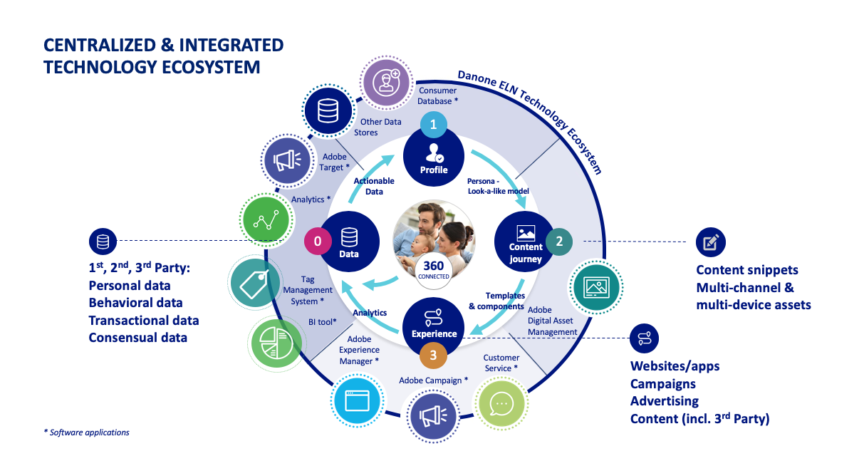 The assessment confirmed that each country had its own needs and wishes. The Adobe Experience Cloud is the best fit for Danone because it can be expanded easily, in line with the digital developments in each country. The platforms come configured with the Google Analytics 360 suite and a tag management system for A-Z measurement. A scalable front-end and central component library ensure that every country works with a consistent and customised platform.