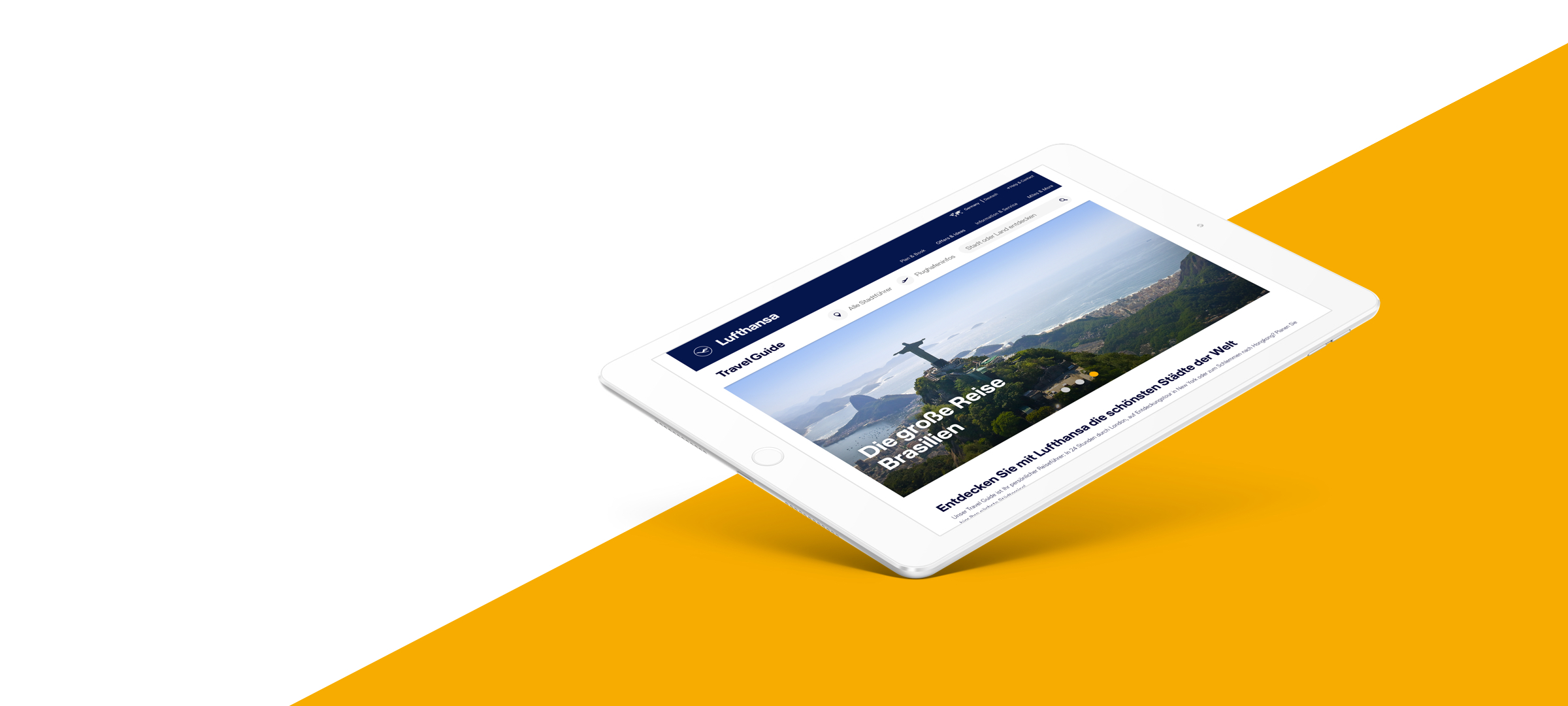 Lufthansa’s online transformation heavily depended on design and UX to create a seamless customer journey. In Germany, Lufthansa's online booking ranks third among top-selling internet offerings, and worldwide the site has millions of visitors annually. To maintain a competitive advantage, Valtech was brought in to further improve the site and related portals, including the booking system on Lufthansa.com, Lufthansa’s online Travel Guide and the inflight FlyNet.